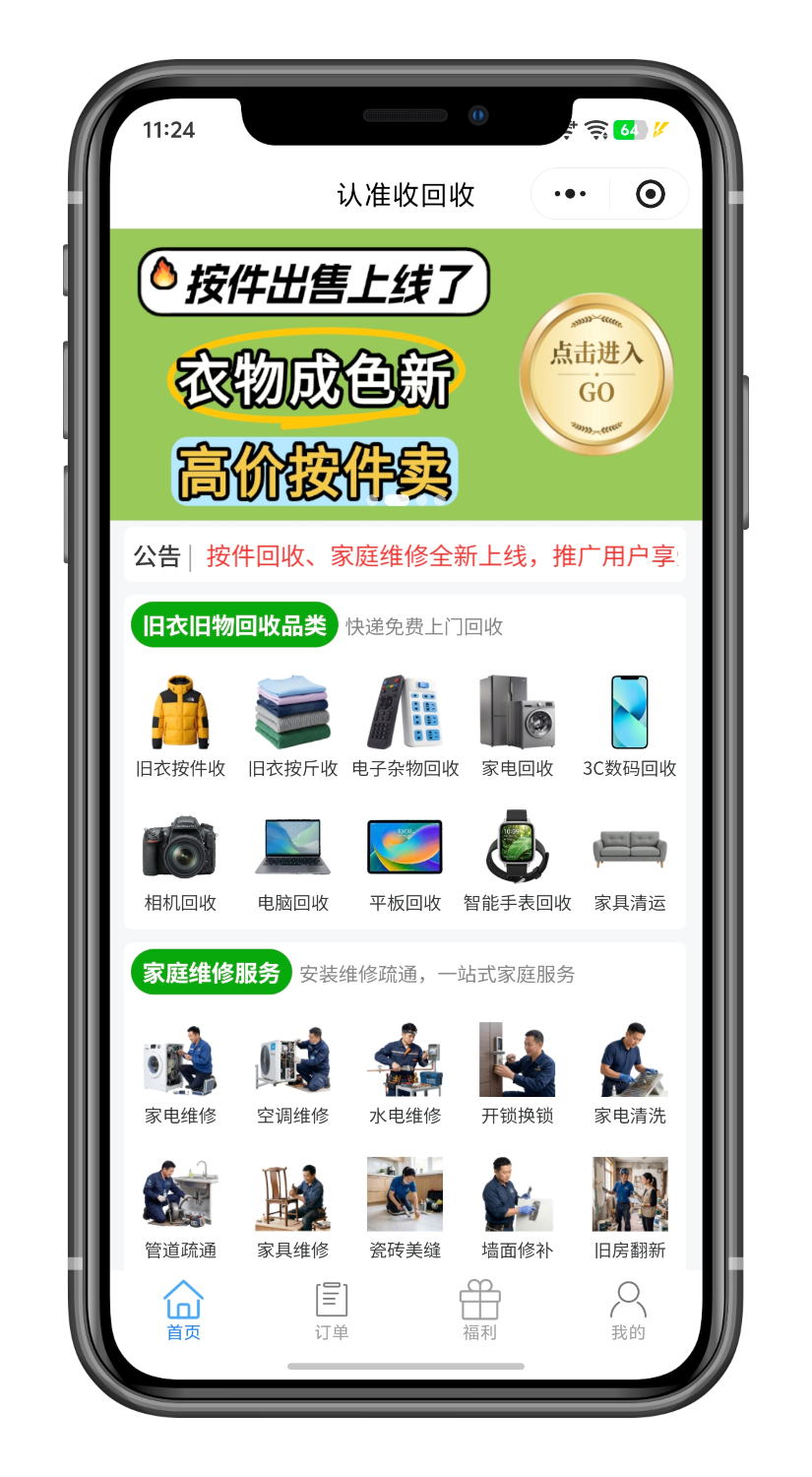 以双轨回收体系为基石,以全国上门服务为纽带,连接闲置与新生,做用户最信赖的绿色生活管家。